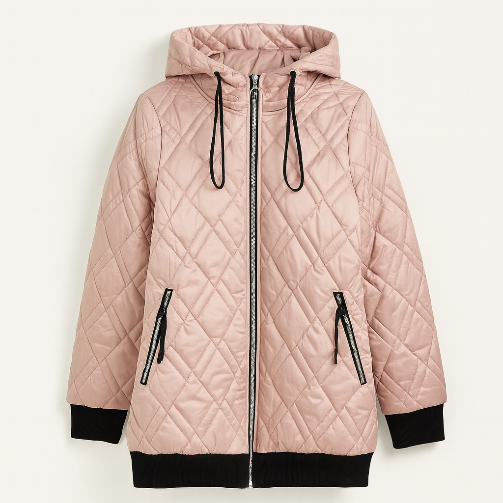 Den höga kragen och huvan ger extra skydd under kyliga dagar, och ribbade muddar, hel dragkedja och noggrant hantverk gör jackan lika bekväm som den är stilfull.